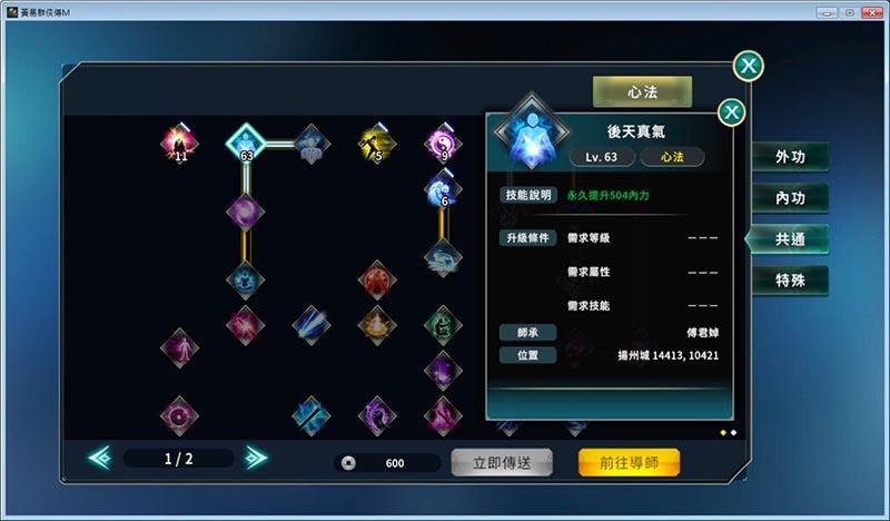 像前面說到的,投資「東冥劍法」的武點只要達到學習「墨子劍法」門檻就好,其他的就拿來點「九玄大法」、「後天真氣」更好。