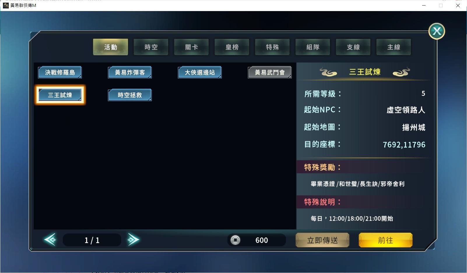 這個是個打王活動,叫”三王試煉” 就是佛、道、魔的三個特色boss任務頁面有註明出現時間,世界頻道也會有封測世界王出現的提示